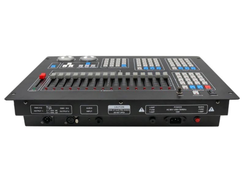 - 512 kênh điều khiển, có thể điều khiển 16 kênh cho 32 đèn thông minh (computer lights)