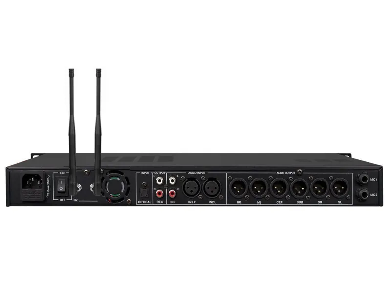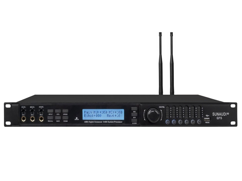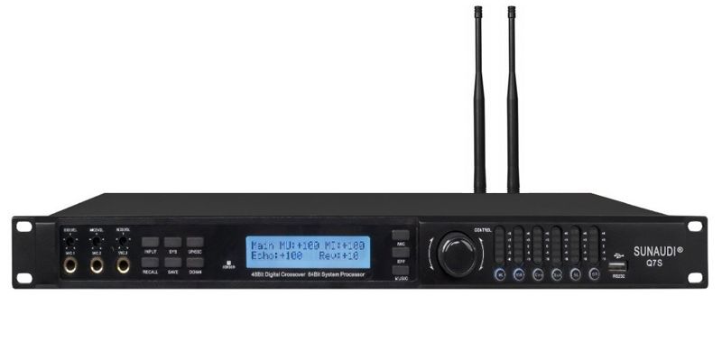 Bộ Xử Lý Sunaudi Q7S là thiết bị phân tần cao cấp tích hợp 2 micro không dây UHF, được thiết kế dành cho các hệ thống âm thanh chuyên nghiệp như hội trường, sân khấu, karaoke cao cấp hay trung tâm hội nghị. Thiết bị có khả năng xử lý âm thanh tự động, điều chỉnh tinh tế chất âm của micro, hiệu ứng (effect) và nhạc nền, giúp tạo nên tổng thể âm thanh hài hòa, mạnh mẽ và sống động. Hệ thống được trang bị 5.1 kênh âm thanh, cho phép tái tạo âm thanh vòm chân thực, cùng khả năng chống hú, chống rít hiệu quả, bảo vệ chất lượng dàn loa và nâng cao trải nghiệm nghe. Sunaudi Q7S ứng dụng công nghệ Dynamic Equalizer (DEQ) giúp duy trì độ trong trẻo, cân bằng và ổn định cho âm thanh trong suốt quá trình hoạt động. Các kênh đầu ra được quản lý qua bộ xử lý trung tâm, chia thành loa trung tâm, loa trước, loa vòm và loa siêu trầm, mỗi kênh tích hợp Parametric Equalizer (PEQ) riêng biệt, cho phép điều chỉnh linh hoạt theo không gian và mục đích sử dụng. Bên cạnh đó, thiết bị hỗ trợ chức năng Delay, gửi nhạc và micro cho từng kênh riêng biệt, đảm bảo âm thanh đồng bộ và tự nhiên trong mọi không gian.