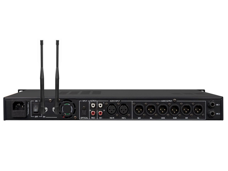 - Tích hợp 2 micro không dây cầm tay tần số UHF