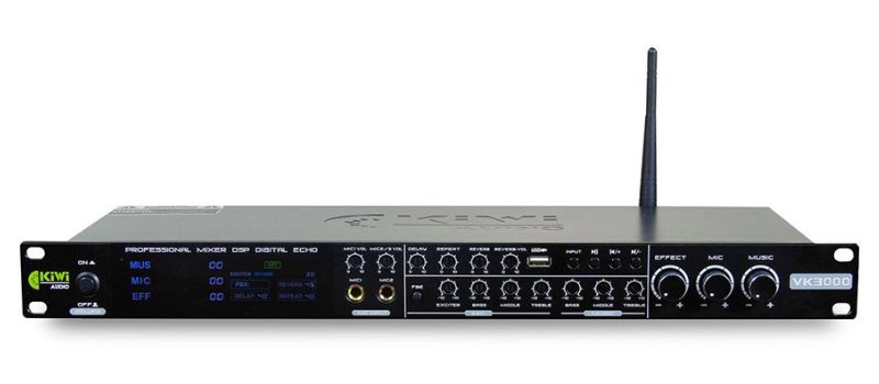 Kiwi VK3000 là sản phẩm kết hợp đủ các ưu điểm của cả 2 dòng vang số và vang cơ, giúp hỗ trợ tối đa trong việc điều chỉnh giúp âm thanh hay hơn, lọc bỏ tạp âm, chống tiếng hú rít, mang lại âm sắc chi tiết ở nhiều kiểu vang vọng khác nhau.