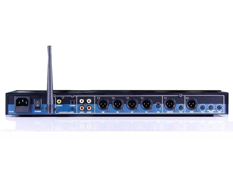 - Các ngõ vào: Coaxial, Optical, Aux1, Aux2, USB, Bluetooth