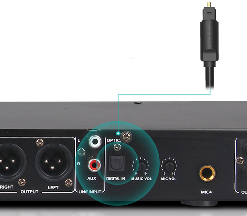Cổng Optical là loại cổng được sử dụng phổ biến trên cách dòng Smart Tivi, các dàn karaoke hiện nay. Công dụng của nó là giúp truyền tải âm thanh với tốc độ cực kì cao và chất lượng âm truyền đến dàn âm thanh vô cùng ấn tượng chỉ thông qua 1 sợi cáp rất nhỏ gọn được kết nối từ Tivi hay thiết bị đầu karaoke đến Vang Cơ Sunaudi DSP-8.