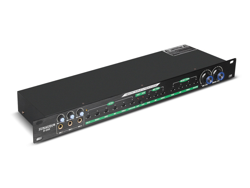 Sunaudi E-260 chính là mẫu có hệ thống xử lý tín hiệu âm thanh chuyên biệt hơn, chỉ làm chức năng cân bằng âm lượng, loại bỏ tạp âm giúp tín hiệu đầu ra trong sáng, rõ ràng. Khác với vang số, Vang Cơ Sunaudi E-260 thân thiện với người dùng hơn bởi cách sử dụng rất đơn giản. Các thông số của âm thanh sẽ được thay đổi tức thì thông qua thao tác ở núm điều chỉnh trên thiết bị.