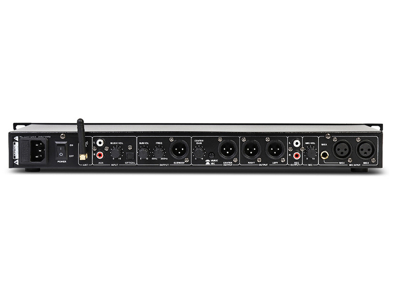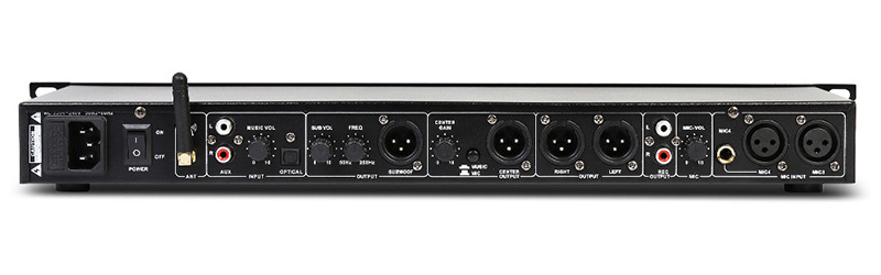 Mặt sau Vang Cơ Sunaudi FX8III là các cổng kết nối phong phú bao gồm: cổng nguồn chống giật, cổng kết nối loa sub, nút chỉnh cắt sub, cổng kết nối loa center, đầu vào micro, Optical... để bạn có thể lựa chọn và kết nối với thiết bị khác một cách nhanh chóng, dễ dàng và thuận tiện nhất. Hơn thế nữa, Sunaudi FX8III là chiếc vang cơ có hỗ trợ kết nối không dây Bluetooth 5.0 cùng mạch đọc USB giải mã MP3 cao cấp với tốc độ truyền dẫn tín hiệu nhanh, ổn định, có thể sử dụng nguồn nhạc từ các thiết bị di động như smartphone, laptop, Tivi,...