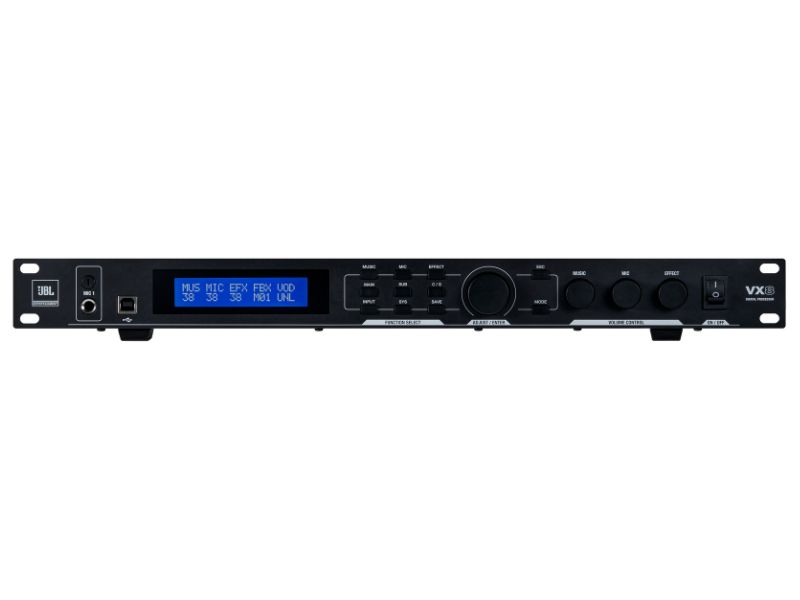 Vang số JBL VX8 được công nghệ âm thanh JB Pro cho khả năng căn chỉnh chuyên sâu mang đến dải tần số thấp phong phú, tần số số rõ ràng. JBL VX8 sử dụng phần mềm để điều chỉnh sâu các hiệu ứng. Việc thiết lập cấu hình trước và sử dụng nút chọn thiết bị sẽ tiện lợi và nhanh chóng hơn. Bộ trộn có EQ 20 băng tần tích hợp để điều chỉnh mic và EQ 15 băng tần để điều chỉnh nhạc.