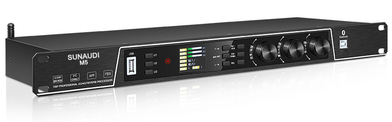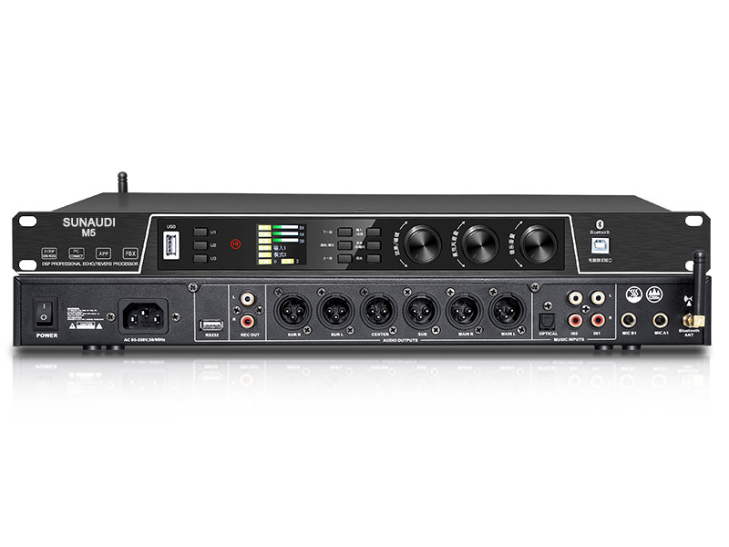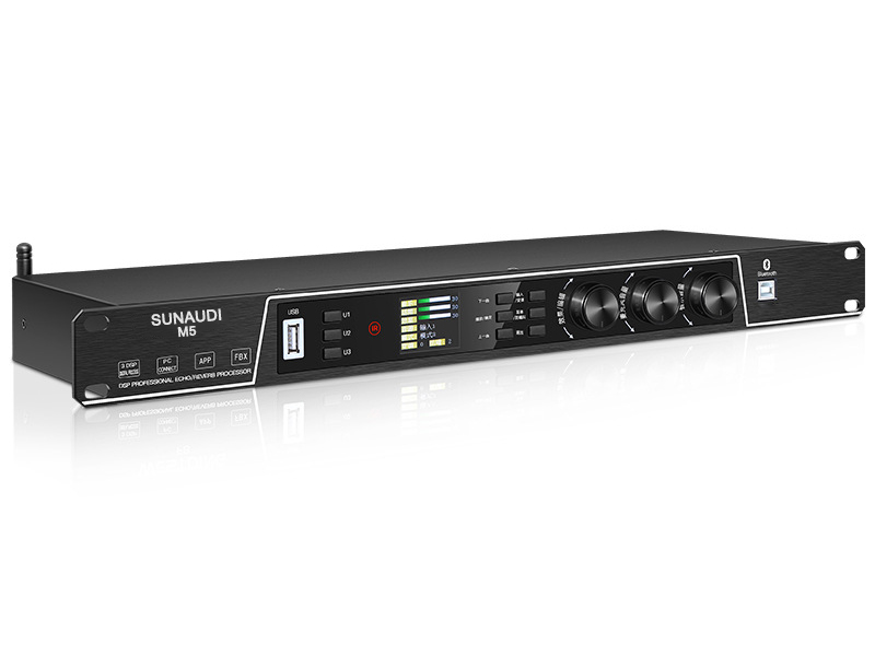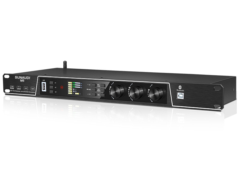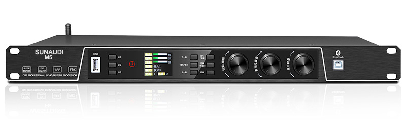 Với hệ thống linh kiện mạnh mẽ. Các chipset D/A và A/D cao cấp của ESS Technology (Mỹ), sử dụng công nghệ giải mã âm thanh 5.1 tiêu chuẩn cho tốc độ xử lý tín hiệu cực nhanh và chính xác. Vang Số Sunaudi M5 mang đến cho người dùng một trải nghiệm âm nhạc thực sự chuyên nghiệp. Âm thanh được tái tạo với độ trung thực cao, giàu độ sáng, giọng hát và nhạc nền được hòa trộn một cách tinh tế, hài hòa, giúp người hát kiểm soát giọng cực tốt. Sản phẩm cũng được tích hợp Bluetooth 5.0 rất tiện dụng.