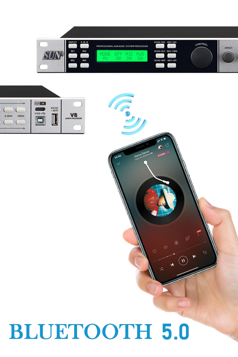 Vang Số Sunaudi V8 sử dụng mạch xử lý hiệu ứng chồng chéo DSP kép mới nhất cho khả năng xử lý và tái tạo âm thanh một cách tinh tế. Cùng với đó là mạch xử lý âm thanh kỹ thuật số và analog, giúp người hát có thể trải nghiệm, thưởng thức các bài hát, bản nhạc một cách sống động, chân thực, chi tiết nhất.