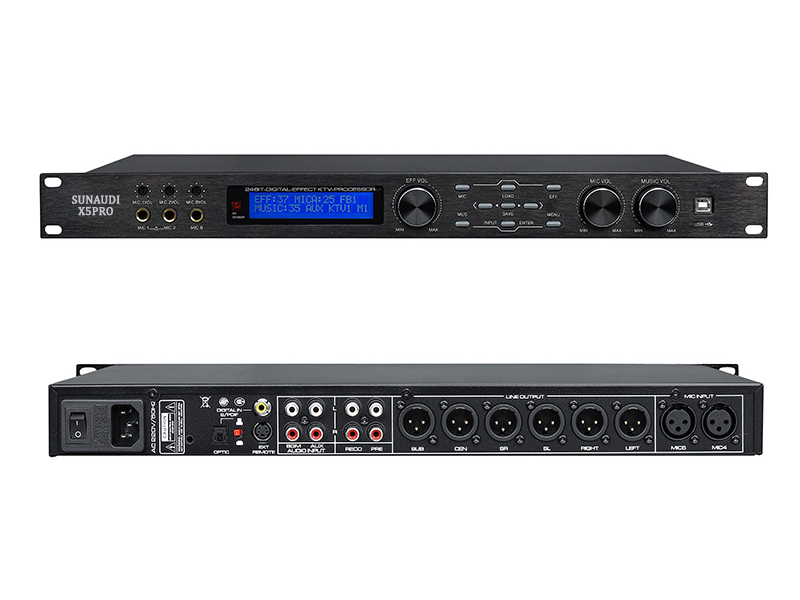 Sunaudi X5 Pro là dòng vang số karaoke tiên tiến cho khả năng hiệu chỉnh tiếng ca, nhạc nền chuyên sâu, hỗ trợ loa tái tạo âm thanh hay, sắc nét theo từng loại nhạc. Vang số này đem đến hiệu ứng âm thanh vượt trội, chất âm mượt mà, loại bỏ hoàn toàn những tiếng hú rít thường gặp trong dàn âm thanh. Thiết bị được sản xuất với công nghệ tiên tiến đến từ hãng Sunaudio cho khả năng xử lý và tái tạo âm thanh chuyên nghiệp.