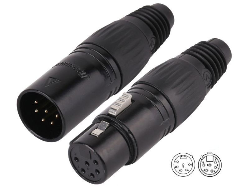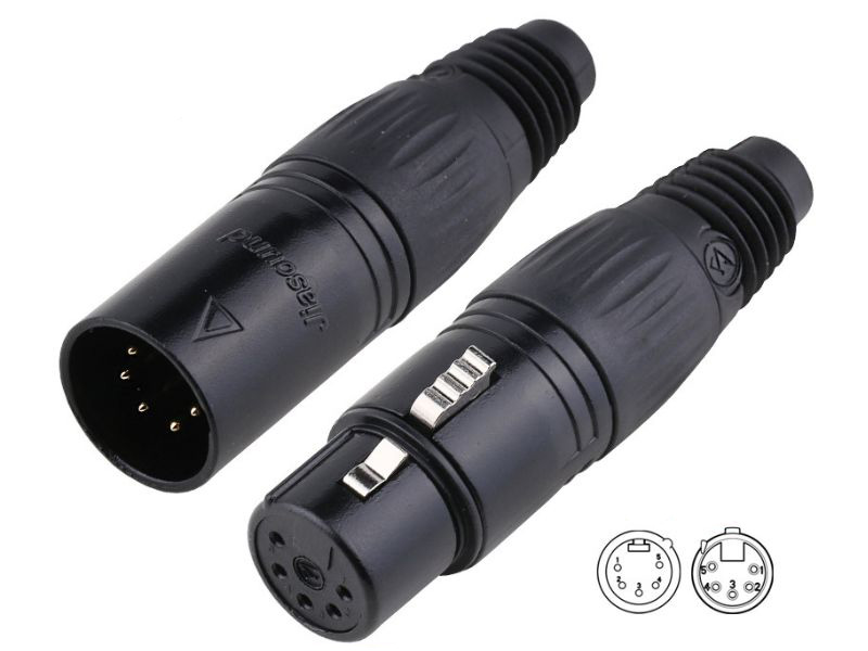Đây là đầu nối tiêu chuẩn được sử dụng trong hệ thống điều khiển ánh sáng kỹ thuật số DMX512. Đầu nối năm chân cũng được sử dụng trong micrô âm thanh nổi, tai nghe liên lạc nội bộ âm thanh nổi và cho nguồn DC trong thiết bị âm thanh.