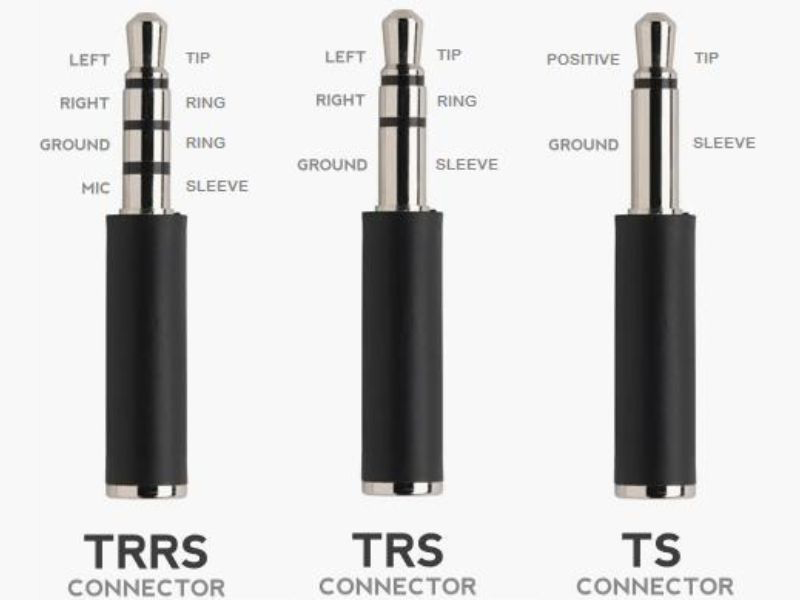 - 3 vòng (4 pin): stereo với kênh trái, kênh phải, microphone và ground