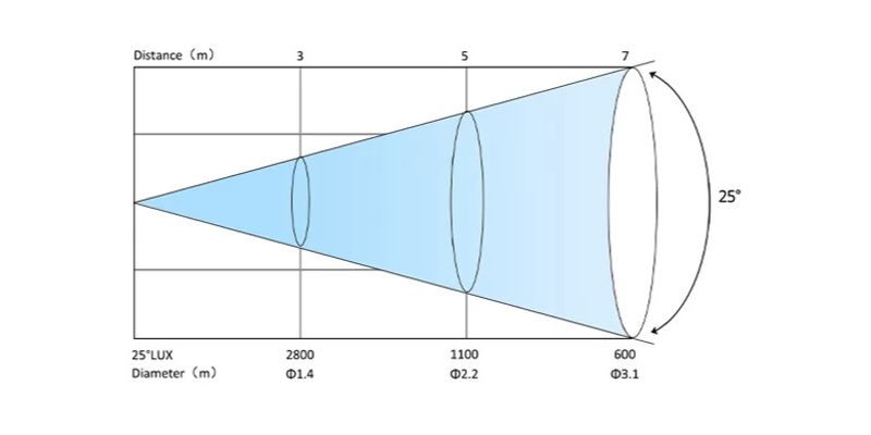 - Cường độ chiếu sáng: Độ sáng trung tâm ≥ [email protected] (7m) (15° Full ON), đường kính vùng chiếu < 3,1m