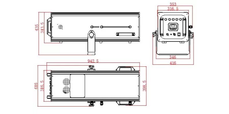 - LED ánh sáng trắng 1000W, công nghệ RGBW 4 trong 1
