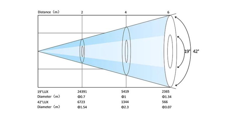 - Cường độ chiếu sáng: Cường độ chiếu sáng trung tâm: ≥ 33.000 Lux @ 6m (19° Full ON), đường kính vùng sáng < 1,34m