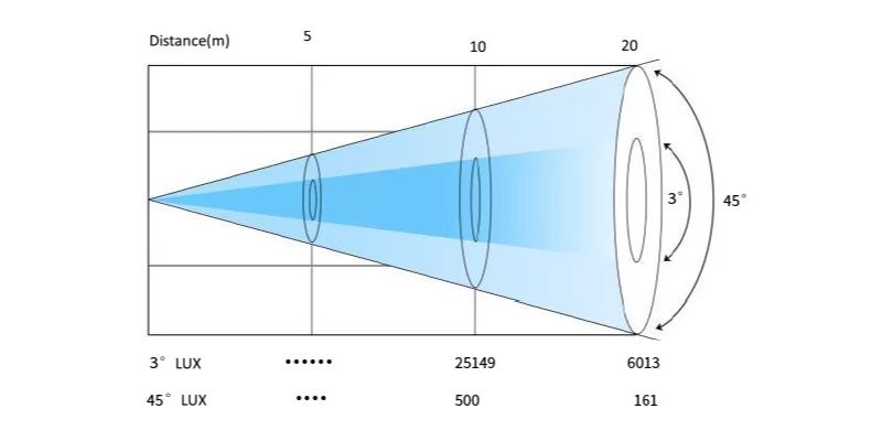 - Cường độ chiếu sáng: Độ sáng trung tâm ≥ 25.000 LUX @10m (65.6’) (2.5° Full ON), đường kính vùng sáng <0,57m