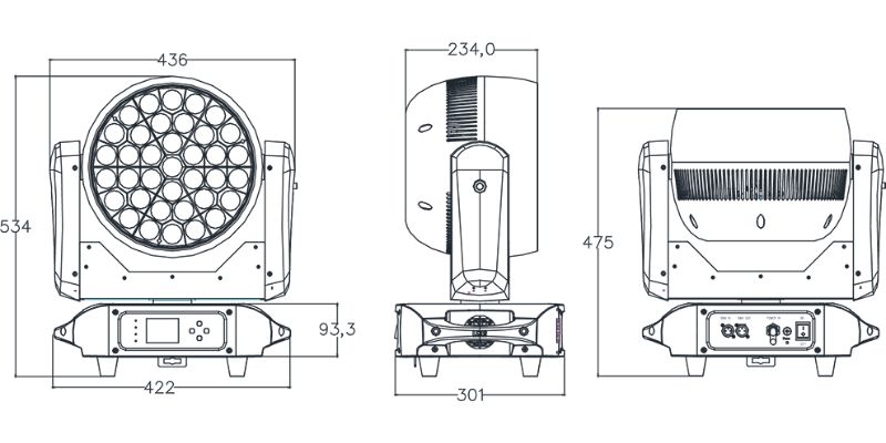 - Kết nối tín hiệu: IP NEUTRIK DMX XLR In/Out