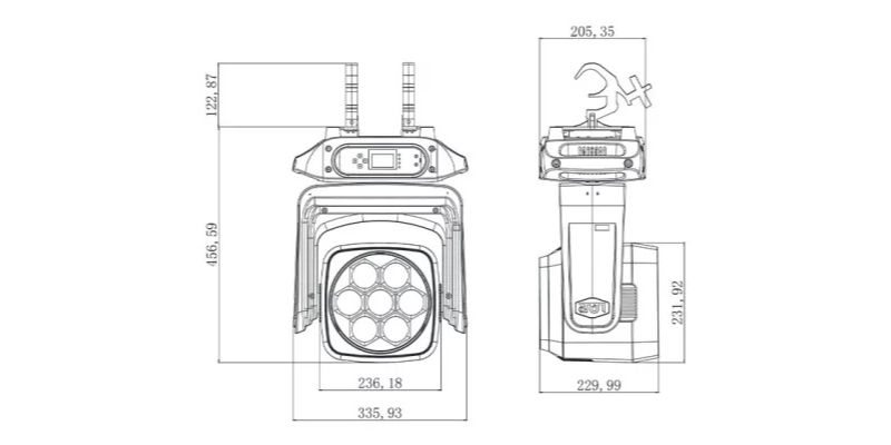 - Kết nối tín hiệu: IP NEUTRIK DMX XLR In/Out