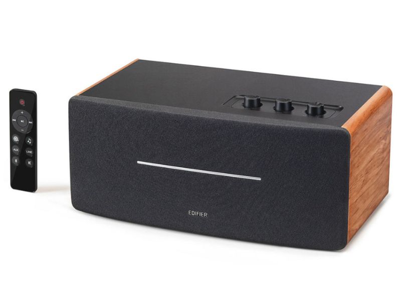 Loa Bluetooth Edifier D12 cũng được trang bị một điều khiển từ xa dễ sử dụng, giúp bạn có thể nhanh chóng điều chỉnh âm lượng hoặc chuyển sang chế độ mà bạn muốn: chế độ phim, chế độ nhạc hoặc các chế độ đầu vào khác.