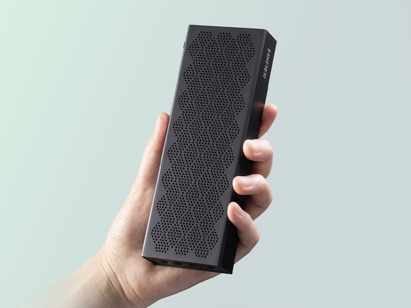Vỏ ngoài của Loa Bluetooth Edifier M120 được làm hoàn toàn bằng kim loại, kể cả mặt bên là nơi đặt các cổng kết nối. Nhờ gia công CNC, các góc cạnh rất mịn và hoàn hảo. Cầm loa trên tay cảm giác rất chắc và đầm, toát lên vẻ cao cấp.