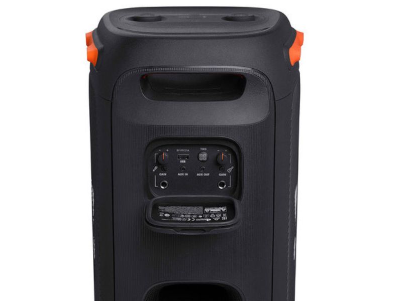 Một cổng phản xạ âm phía sau giúp tối ưu hóa âm thanh chiếc loa Bluetooth JBL PartyBox 110 hơn nữa, (một bật bí nhỏ cho các bạn trả thích nhạc dance, remix, là bạn có thể đặt chiếc loa với cổng phản xạ âm này gần tường, bạn sẽ cảm nhận được âm thanh hay hơn và với âm trầm tốt hơn nữa).