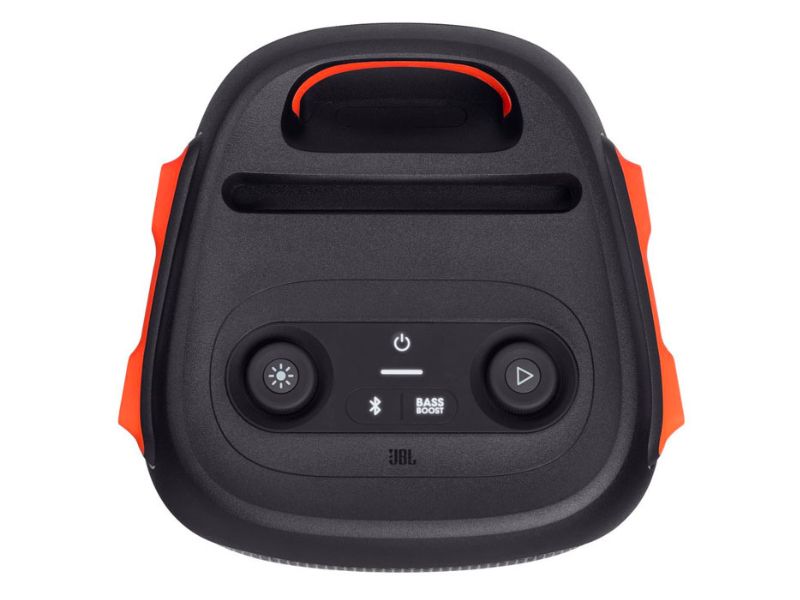 Với bảng điều khiển tích hợp phía trên bao gồm: nút bật và chuyển chế độ đèn, nút nguồn, nút bluetooth, chế độ bassbot và nút play giúp bạn có thể điều khiển Loa Bluetooth JBL PartyBox 110 dễ dàng.