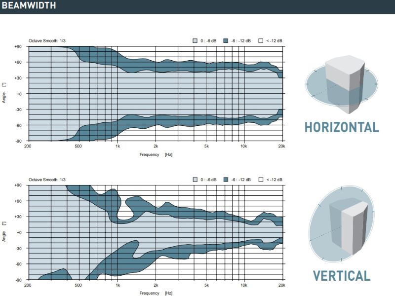 - Loa được trang bị loa trầm kích thước 15 inch Reflex-loaded và một loa treble 3 inch với màng chắn bằng titan được tải trên một họng còi đường hướng không đổi (90° x 64° từ 500Hz đến 10kHz).