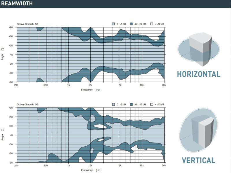 Độ phân tán đồng nhất của Loa Outline DVS 8P SP từ 500Hz đến 4kHz có mức trung bình là 112° (theo chiều ngang) và 111° (theo chiều dọc) và phạm vi âm thanh rộng từ 500Hz đến 10kHz trung bình là 119° (theo chiều ngang) và 93° (theo chiều dọc).