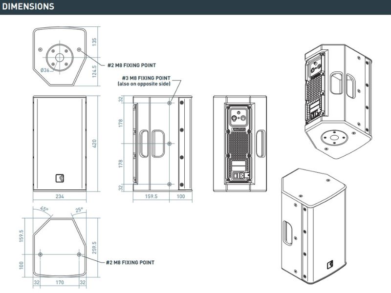 Thùng Loa Outline DVS 8P SP đối xứng bằng gỗ ép mỏng 12mm cho phép sử dụng như một loa Monitor tầm thấp ở hai vị trí ngang (25° và 45°). Bên cạnh đó phía trong thùng loa DVS 8P SP cũng được gia cố chắc chắn nhằm giảm thiểu các tạp âm không đáng có.Bên ngoài có mười điểm lắp ráp M8 được vặn chặt (ba điểm trên mỗi bên, hai điểm trên đỉnh và hai điểm dưới cùng) để thuận tiện cho cả việc treo đứng và treo ngang, một lỗ cắm chân loa 35mm ở mặt dưới cũng rất tiện dụng khi kết hợp Outline DVS 8P SP với các loa Sub khác. Lưới bằng thép trên mặt trước của loa được sơn phủ màu đen chống chịu thời tiết và không bị rung khi hoạt động.