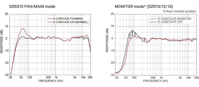 Là sự bổ sung hoàn hảo cho thiết kế thùng loa linh hoạt của Yamaha DZR315, D-CONTOUR cung cấp hai chế độ sử dụng khác nhau, chế độ FOH / MAIN hoặc MONITOR, giúp điều chỉnh âm thanh chi tiết hơn cho cấu hình âm thanh của bạn. Chế độ FOH / MAIN giúp mở rộng thêm tần số thấp để bù đắp cho những dải tần low thường bị thiếu khi loa được sử dụng trong các ứng dụng treo hoặc gắn trên chân loa. Chế độ MONITOR được tối ưu hóa cho ứng dụng monitor trên sân khấu bằng cách điều chỉnh và triệt tiêu các tần số thấp không mong muốn để mang lại độ rõ nét mà các chuyên gia yêu cầu. Cả hai cài đặt có sẵn này đều được hoàn thiện bằng cách thực hiện vô số quá trình nghe thử nghiệm với các kỹ sư âm thanh nổi tiếng trong nghề để đảm bảo âm thanh nhất quán với độ méo thấp dù với bất kỳ mức đầu ra nào.