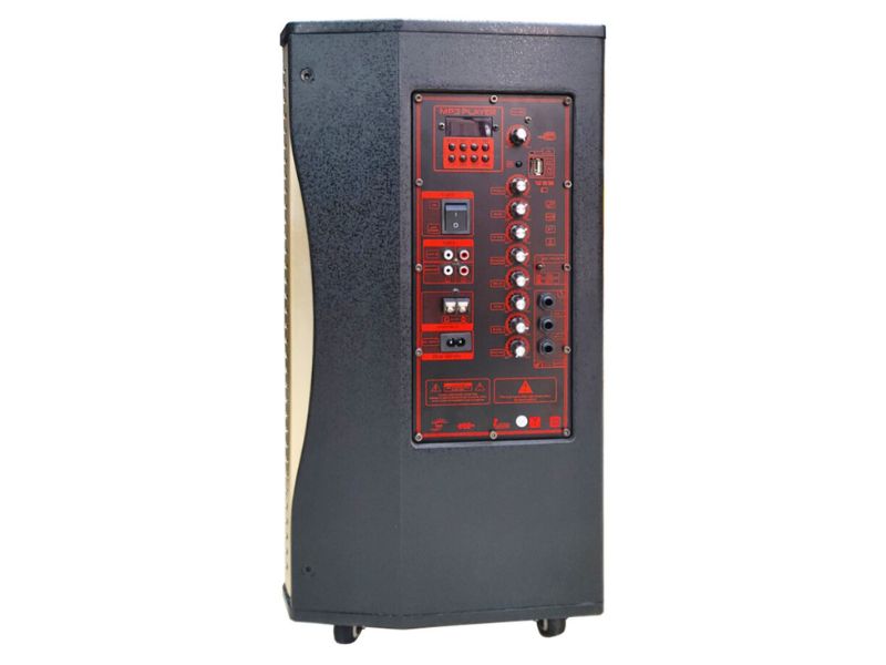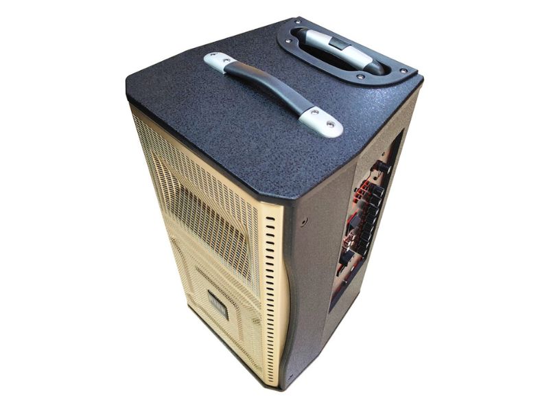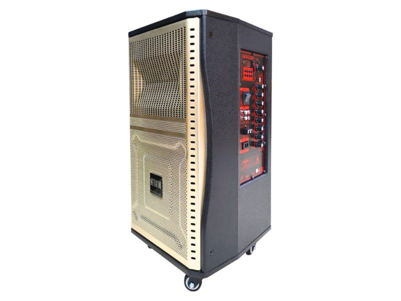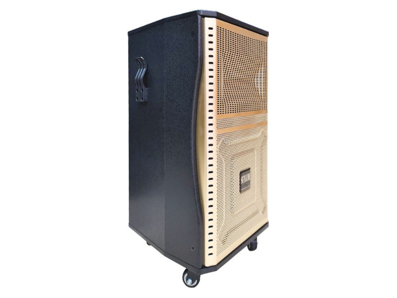 - Thùng loa làm bằng ván ép, có quai kéo và xách, có bánh xe