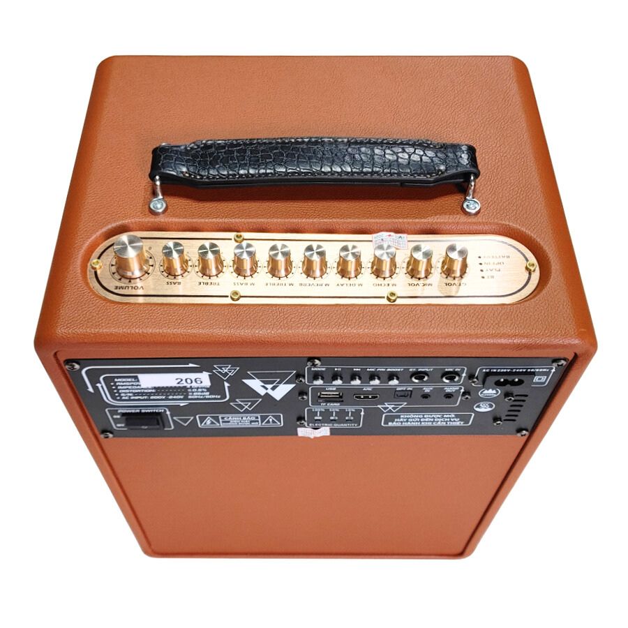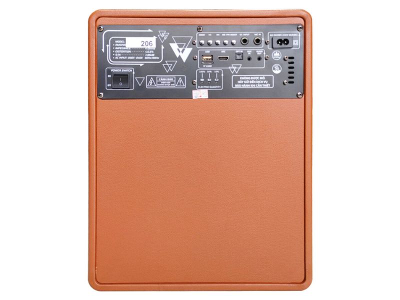 - Thùng loa làm bằng ván ép, dán da, có quai xách