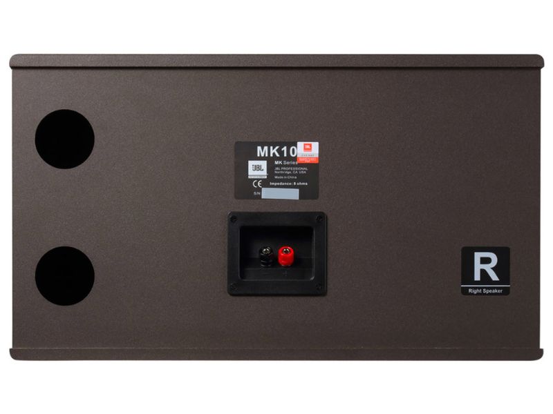 Mặt sau của JBL MK10-PAK cũng được thiết kế và bao bọc bằng tấm gỗ màu cà phê trông khá đẹp và cũng là nơi bố trí, kết nối với các hệ thống âm thanh cùng với các thông tin vể sản phẩm.