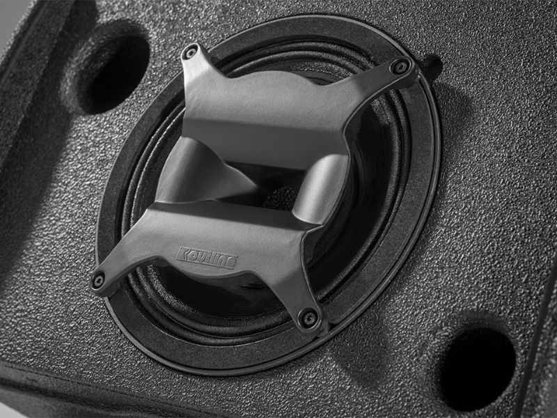 - Thùng loa làm từ ván ép sơn chống xước Polyurea bền bỉ, chống chịu thời tiết