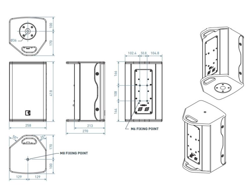 - Gồm Bass 8" và Treble 1.5″ diaphragm compression driver