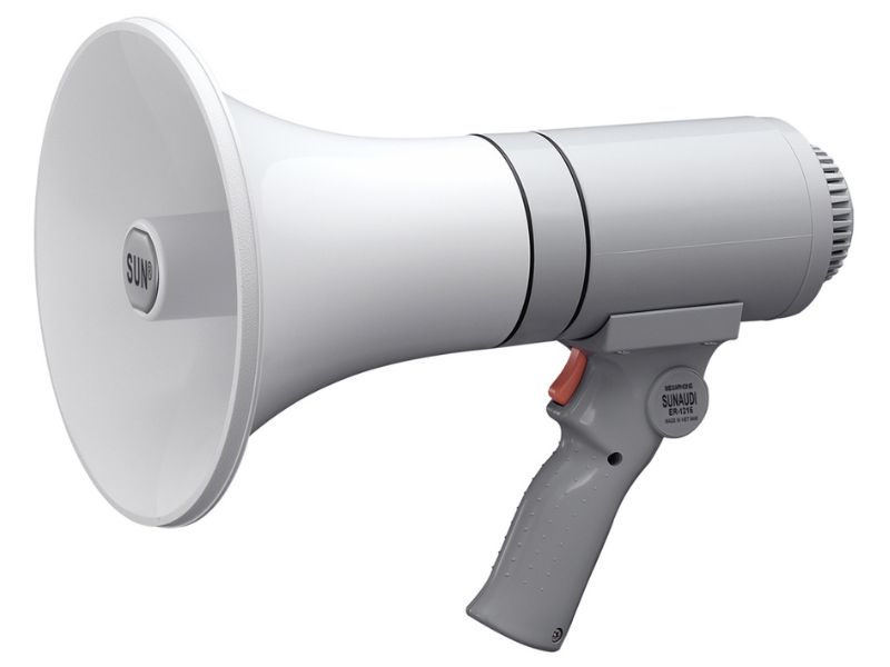 Megaphone Cầm Tay Sunaudi ER-1215 là thiết bị khuếch đại âm thanh nhỏ gọn, tiện dụng, phù hợp cho các hoạt động ngoài trời, sự kiện, hướng dẫn du lịch, hay công tác điều hành khẩn cấp. Với công suất ra 15W và công suất tối đa lên đến 23W, thiết bị mang lại âm thanh rõ ràng, mạnh mẽ, giúp người nghe có thể tiếp nhận thông tin trong phạm vi khoảng 400 mét.