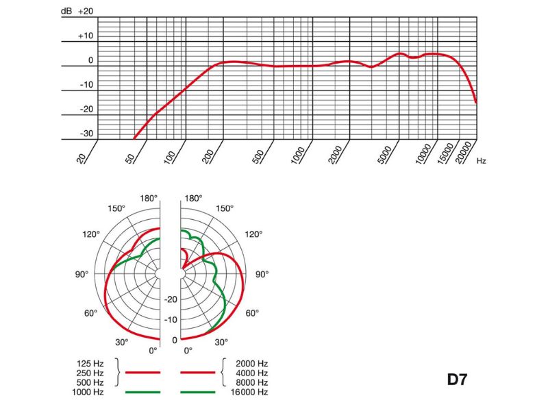 - AKG D7 thuộc dòng micro đa hướng (supercardioid), được thiết kế để sử dụng trong các ứng dụng biểu diễn trực tiếp và thu âm ca hát