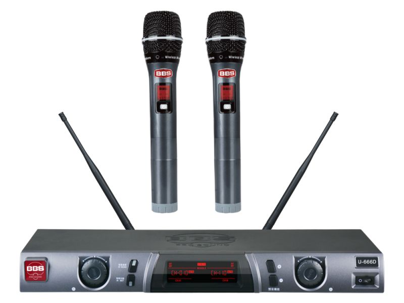 Micro Không Dây BBS U-666D là dòng micro không dây thương hiệu BBS chuyên dùng cho các dàn âm thanh karaoke kinh doanh, gia đình, các dàn âm thanh sân khấu hội trường. Sản phẩm với mẫu mã thiết kế rất bắt mắt và chất âm vô cùng tuyệt vời là sự lựa chọn tốt cho khách hàng.