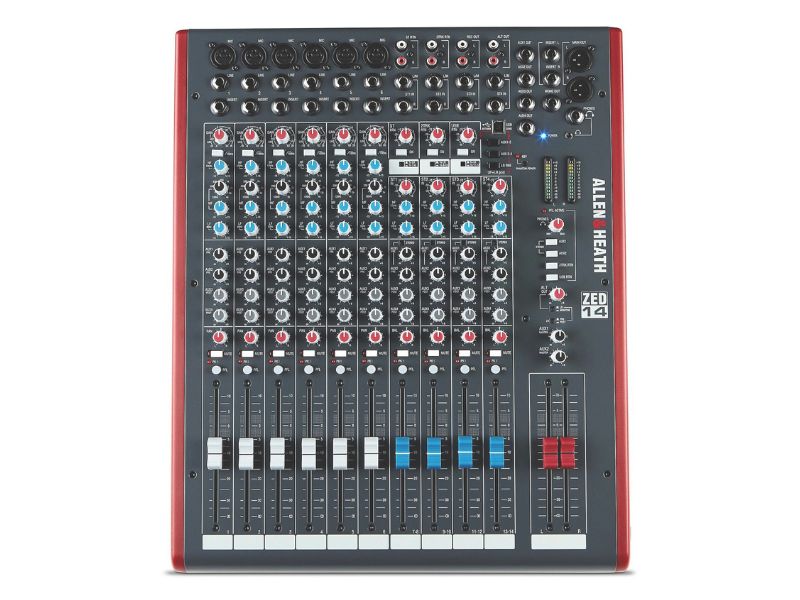 Allen & Heath ZED-14 được cung cấp đầu vào/ra âm thanh USB có thể định cấu hình giúp bạn dễ dàng ghi âm thanh nổi, 6 đầu vào micrô hoặc đường truyền, 4 đầu vào âm thanh nổi với EQ, có 157 điều khiển đáng kinh ngạc trên bảng điều khiển phía trước của ZED-14.