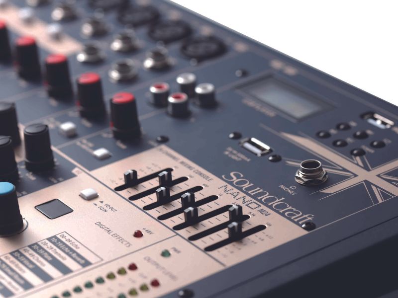 Mixer Soundcraft Nano M24 có giao diện người dùng dễ tiếp cận và cuốn hút. Đồng hồ Atmos Meter trên Nano M24 có thiết kế độc đáo thể hiện sự tận tâm của SOUNDCRAFT đối với sản phẩm và tạo thêm hiệu ứng hình ảnh cho buổi biểu diễn trực tiếp. Bộ phát USB tích hợp hỗ trợ phát và ghi âm định dạng MP3. Soundcraft Nano M24 tích hợp bộ xử lý DSP 24-bit cung cấp lên đến 100 hiệu ứng được thiết lập sẵn. Đầu ra main mix đi kèm với bộ Equalizer 7 dải và một ngõ insert.