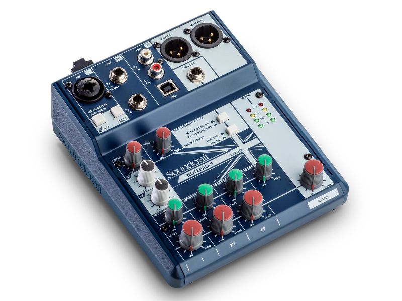 Bạn sẽ cảm thấy thoải mái và dễ dàng với giao diện truyền thống của Mixer Analog Soundcraft Notepad 5. Hai điều khiển EQ cho mỗi kênh mang đến một mức độ tiện ích thường dành cho các bàn trộn lớn hơn. Một bộ điều khiển âm lượng tai nghe xoay trên Mixer Soundcraft Notepad 5 giúp bạn dễ dàng điều chỉnh mức âm thanh nghe cá nhân của mình, trong khi mức độ master với đèn LED metering cung cấp sự kiểm soát chính xác đối với tín hiệu đầu ra chính của bạn. Soundcraft Notepad 5 thiết kế cho các phòng thu nhỏ, buổi tập, biểu diễn trực tiếp và sản xuất podcast, Notepad 5 cung cấp một bố cục quen thuộc đối với các chuyên gia âm thanh nhưng cũng rất dễ dàng để tiếp cận với những người dùng mới.