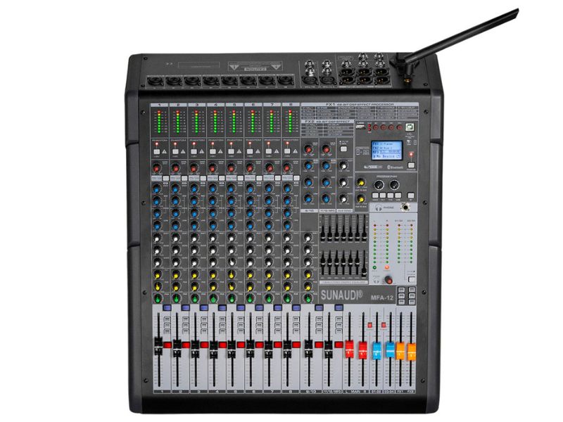Mixer Analog Sunaudi MFA-12 là mẫu bàn trộn âm thanh mạnh mẽ, được thiết kế dành cho hệ thống âm thanh chuyên nghiệp đòi hỏi sự linh hoạt, ổn định và chất lượng cao. Thiết bị được trang bị 8 kênh mono XLR và 4 kênh stereo, đáp ứng tốt cho các nguồn âm thanh đa dạng như micro, nhạc cụ, thiết bị phát nhạc… phù hợp cho sân khấu, hội trường, sự kiện và phòng thu bán chuyên.