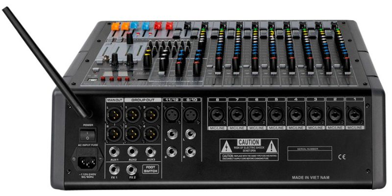 - Số kênh: 8 mono XLR input và 4 stereo input