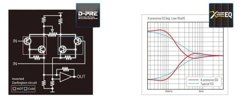 Yamaha đã tập trung hơn để tạo ra những âm thanh du dương và ấm áp của các thiết bị EQ vintage. Thông qua việc lấy mẫu tỉ mỉ bảng mạch gốc của những thiết bị EQ trong quá khứ, Yamaha đã phát hiện ra một đặc tính “X-shape” của những đường cong tần số độc nhất vô nhị trong các thiết bị này. Không chỉ chỉnh sửa bản mix, những đáp tần chính xác và những đường shelving rất dốc của các tần số cao và thấp khiến cho bộ xử lý EQ X-pressive trở thành một công cụ xử lý âm thanh mạnh mẽ, định nghĩa lại vai trò của EQ trong live sound. Với bộ xử lý EQ X-pressive, bạn có thể kiểm soát hoàn toàn chất âm của mình.