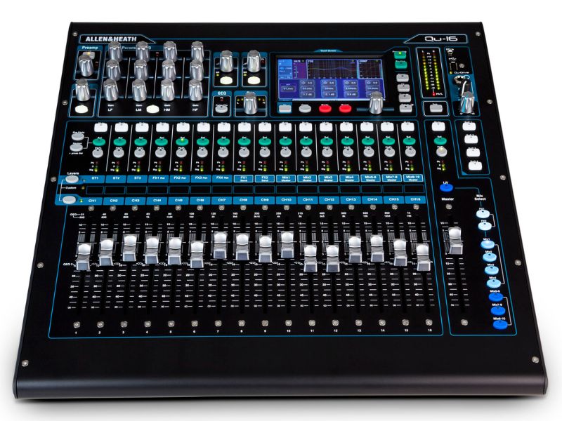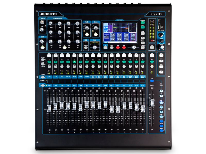 Mixer Digital Allen & Heath Qu-16 là dòng mixer Digital gồm 16 kênh Mono Mic/Line, 3 Stereo Input, 17 motor faders. Được tích hợp màn hình LCD cảm ứng cao cấp và khả năng kết hợp với các thiết bị ipad, máy tính điều khiển từ xa.