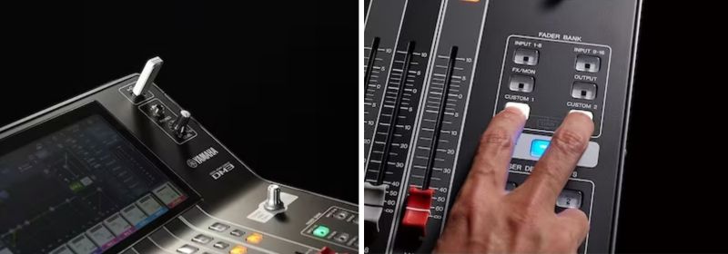 - Giao diện người dùng: 1 màn hình cảm ứng đa điểm 9 inch, 9 faders (8 channels + 1 main), 1 "Touch and Turn" rotary encoder