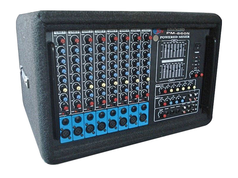 Power Mixer Sunaudi PM-860NEW là phiên bản nâng cấp mạnh mẽ của dòng mixer chuyên nghiệp Sunaudi PM-860M, được thiết kế hướng đến hiệu năng vượt trội, khả năng xử lý linh hoạt và độ bền cao. PM-860NEW sở hữu công suất đầu ra 2 x 1200W, mang đến âm thanh mạnh mẽ, chi tiết và trung thực, phù hợp cho hội trường, sân khấu, karaoke chuyên nghiệp. Sunaudi PM-860NEW được trang bị 8 ngõ vào micro (mono) và 2 ngõ vào nhạc (stereo), cùng 4 đầu vào stereo độc lập, cho phép kết nối đa dạng thiết bị cùng lúc. Mỗi kênh đều có thể điều chỉnh Echo riêng biệt, tăng giảm âm lượng đầu - cuối dễ dàng, cùng các núm cân chỉnh chi tiết như Gain, Hi, Mid, Low, Eff, Bal. Hệ thống Echo tổng 4 cấp độ và Echo Digital chất lượng cao giúp tái tạo âm vang sống động, chuyên nghiệp, hỗ trợ tối đa cho giọng hát và nhạc nền.