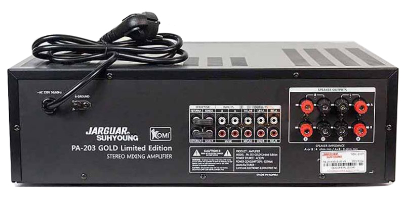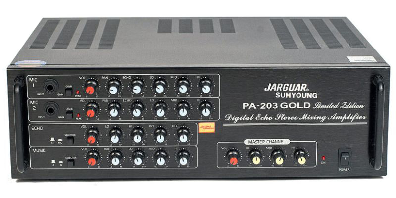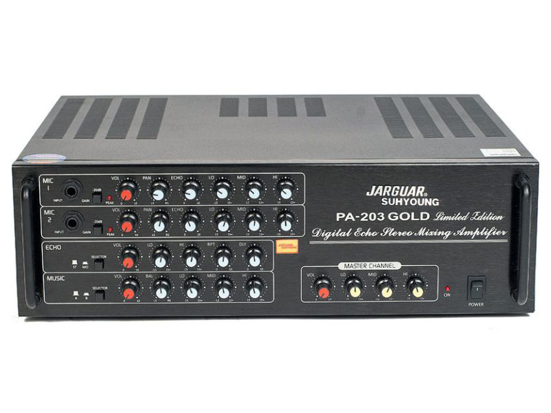 Ampli Jarguar Suhyoung PA 203 Gold Limited Edition là 1 trong 4 mẫu nằm trong Seri LIMITED EDITION mà hãng Jarguar Suhyoung vừa giới thiệu đến các khách hàng đam mê ca hát tại thị trường Việt Nam. Sản phẩm là sự nối tiếp thành công của dòng amply Jarguar Suhyoung PA-203N Gold trên thị trường âm thanh karaoke với cải tiến về công nghệ nhằm mang tới những ampli chất lượng.