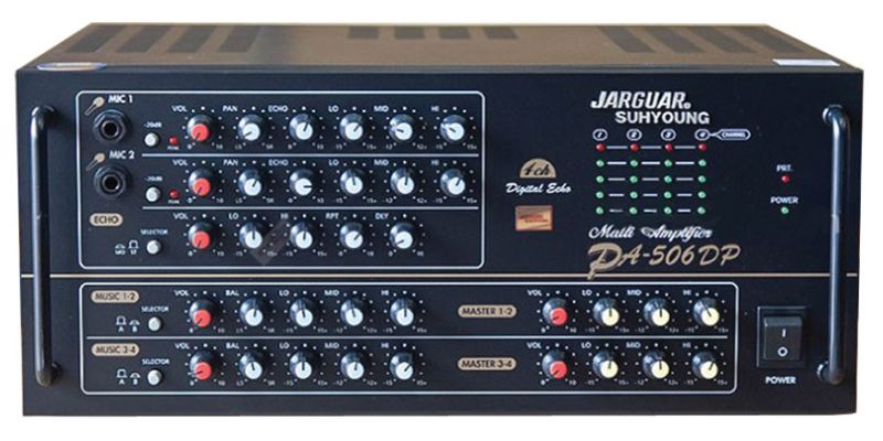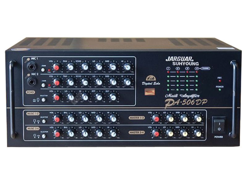 Công nghệ Analog truyền thống với mạch khuếch đại công suất 130W/kênh giúp cho âm thanh phát ra loa mạnh mẽ, đầy đặn và khỏe khoắn hơn. Ampli Jarguar Suhyoung PA 506DP trang bị hệ thống Equalizer tạo hiệu ứng âm thanh trung thực, mềm mại. Không chỉ có vậy, nó còn có khả năng cân chỉnh tiếng vang bằng kỹ thuật số giúp cho âm thanh phát ra hay hơn rất nhiều.