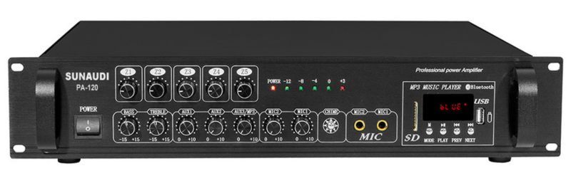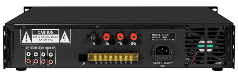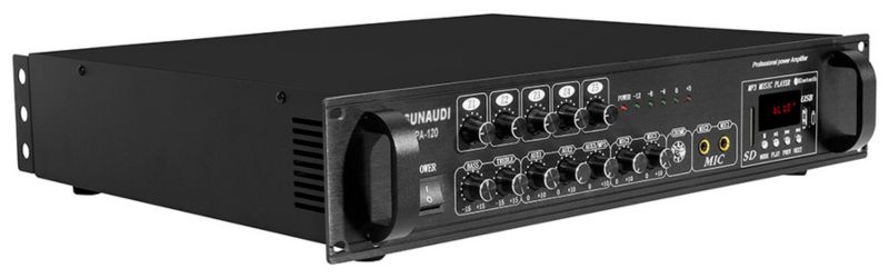 Ampli Sunaudi PA-120 là ampli công suất 180W được thiết kế dành cho hệ thống âm thanh thông báo, phát nhạc nền và hội nghị chuyên nghiệp. Thiết bị hỗ trợ ngõ ra 8Ω, 70V, 100V, dễ dàng tương thích với nhiều loại loa và hệ thống phân vùng khác nhau. Đặc biệt, PA-120 cho phép điều chỉnh âm lượng độc lập cho 5 vùng, mang đến khả năng kiểm soát linh hoạt từng khu vực phát thanh.