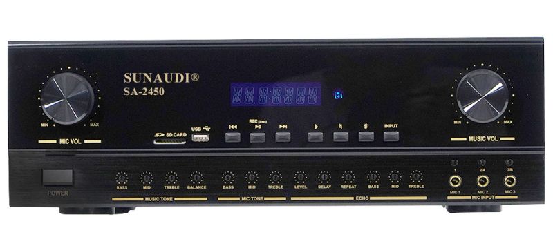 Một điểm nổi bật của Ampli Sunaudi SA-2450 là khả năng ghi âm, chống hú micro, nhiều chế độ EQ cài đặt sẵn, cho phép người dùng tối ưu âm thanh theo từng không gian. Bên cạnh đó, ampli cho phép điều chỉnh Bass - Mid - Treble riêng biệt cho nhạc, micro và echo, mang lại sự chủ động hoàn toàn khi phối âm. Hệ thống echo kỹ thuật số kết hợp delay, repeat và volume riêng biệt giúp giọng hát mượt mà, bay bổng và nhiều màu sắc hơn. Sunaudi SA-2450 còn tích hợp mạch bảo vệ quá tải, quá nhiệt và lỗi DC, đảm bảo thiết bị luôn vận hành an toàn, bền bỉ. Hoạt động linh hoạt với nguồn điện 100-240V / 50-60Hz, Ampli Sunaudi SA-2450 phù hợp với mọi hệ thống âm thanh trong gia đình, sân khấu nhỏ và phòng karaoke chuyên nghiệp.