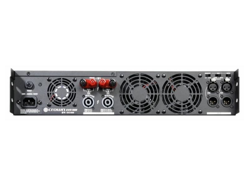 Cục Đẩy Crown KVS1000 có kiểu dáng đơn giản nhưng thiết kế đảm bảo sự tiện dụng cao nhất. Lớp vỏ thép 2U của KVS1000 bền đẹp, chắc chắn bảo vệ máy bền hơn. Volume kiểm soát chính xác cho từng kênh âm thanh, công tắc nguồn cùng đèn LED báo nguồn điện, đèn LED cho tín hiệu, LED Clip báo quá tải và lỗi cho từng kênh. 3 quạt tản nhiệt êm tĩnh tiếng nhẹ không gây ồn, đảm bảo hiệu suất cao nhất cho thiết bị hoạt động liên tục thời gian dài Đầu vào của KVS1000 là loại XLR. Đầu ra loa có 2 loại là: Cọc loa dạng bắp chuối, luồn dây trần và Speakon - Canon.